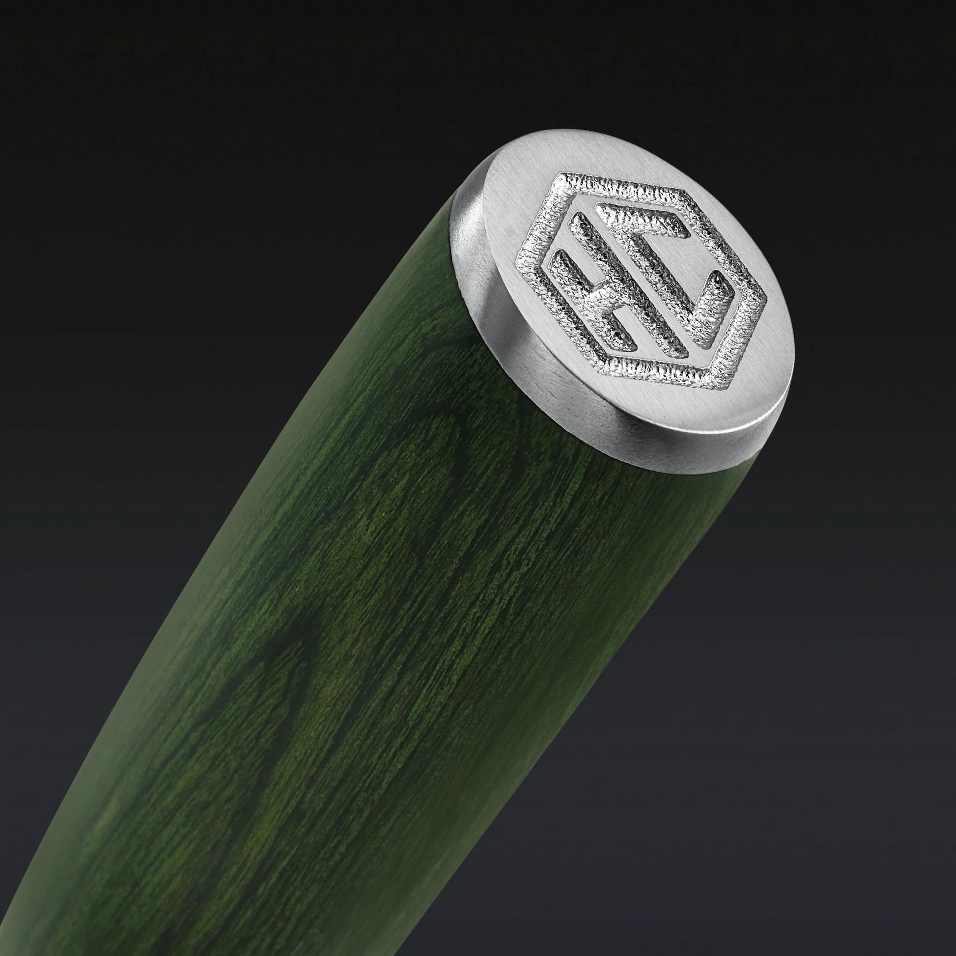 - Stunning green Pakkawood handle–infused with resin to increase resistance to cracking–is contoured for amazing comfort and grip.