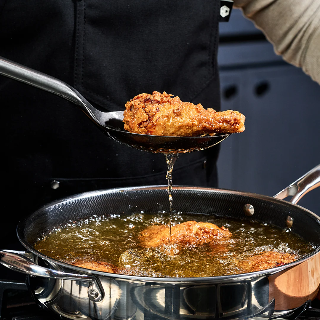 - Wok Spoon: Jumbo stainless-steel perforated spoon lifts and drains with speed–perfect for deep-frying dumplings, seafood boils and wok cooking.